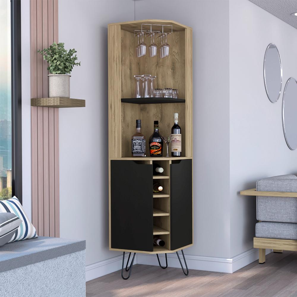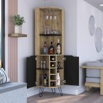 Bursan Corner Bar Cabinet, If you’re looking to add unique style to your home bar, here’s the solution! This bar cabinet can be placed in any corner without too much space. It has two shelves (20,2”H X 15,7”H X 25”W), one cup rack, especially for your glasses, and four shelves (8,4”W X 10,6”H X 13,3”H)