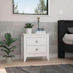 Oasis Nightstand is the perfect way to add a touch of elegance to any room. With its two spacious drawers (15.94’W X 4.72’H) and sleek metal handles, it’s ideal for holding all your essentials. The Superior Top (28.38”) provides the perfect space for displaying dcor or books. Whether you use it in your bedroom, living room, or office, the Oasis Nightstand will make a lasting impression. Designed with elegant black wengue and white manufactured wood finish.